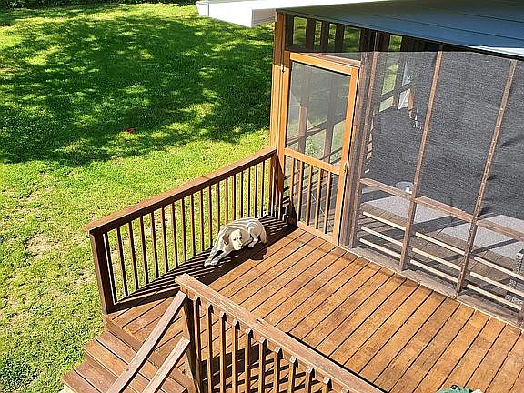 2 large br , 2 full bath 1st level. 1br and 1 1/2 ba and large play room upstairs All hard wood floor or tile . Screen in porch. New appliances all stay . New c.h.a. 2017. New mini split for upstairs . New roof , updated doors , windows , siding and concrete driveway. Chain link fence . Most of property is fenced with ag fencing . Pond , small barn . Vacant mobile home pad with utilities in place and separate driveway . Carport and large 2 car garage with new doors and openers .