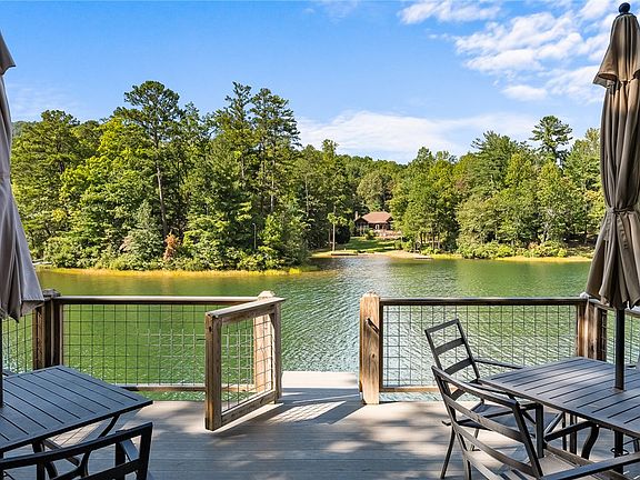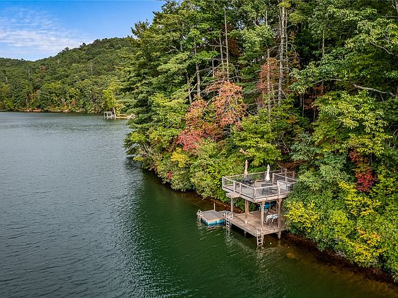 Fully furnished 6 bedroom, 3 bathroom, lakefront home with two docks on pristine Lake Chattooga! Currently used as a family retreat and short term rental, this home has some of the largest lake frontage in the community with over 455 feet of water frontage. Before you hop off the two-story dock, head inside where the split floor plan features room for all. The main level has an open living/dining set up, plus full kitchen (so much storage here) and access to both the covered deck and screened-in porch. The porch is the perfect place to host parties and gatherings, plus take in those great lake views. The main level also features 2 guest beds, a full guest bath, laundry and a primary suit with attached full bath and two closets. Downstairs is a modern kitchenette, lounging space, 3 more bedrooms, a full bath, utility room and under the stairs mechanical room with brand new well water filter. As you leave the screened in porch, use the new ramp to head toward the firepit area. What a spot to spend the upcoming fall evenings! A trail and unique handrail made from local laurel branches takes you down to the first dock. Trex decking up top will keep for years to come. The swinging gate from this level is perfect for the legendary cannonball contest you've been dreaming of. The lower level stays nice and dry thanks to the roof system, and features storage plus access to a side floating dock as well. From the house, head past the storage building, the generator building and toward the bottom of the driveway you'll see another path leading to the second dock. This is a great spot to launch boats, paddleboards and kayaks. The neighborhood does allow Short Term Rentals (STR) and is a great jumping off point to destinations like Clayton GA, Highlands NC, Cashiers NC, Clemson SC and more. Make sure to view the virtual tour and floor plan as you schedule your private tour of 975 Chattooga Ridge Road today!