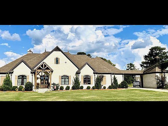 Beautiful, French Country, Custom Built home in Springlake. This is a MUST see home-Super Custom Built & Decorated by an Interior Designer. This spacious, one level home features 4/5 bedrooms, 4.5 bathrooms, Family Room with real wood burning fireplace, with Old Birmingham Brick, and Brick arch open to kitchen. Gorgeous kitchen with granite, breakfast area, master suite with marble vanity, custom cabinets throughout the entire home. Spacious media room, with surround sound, and includes a bedroom with custom built bunkbeds.503 sq ft of outdoor living area, with fireplace, beautiful wood ceiling in both the entry way and back porch. Wired for a pool. Two Trane HVAC units. 3-car attached garage, plus a 419 sq ft detached garage/shop. Total sq ft of this home is 5533. Total heated sq ft is 3648.
