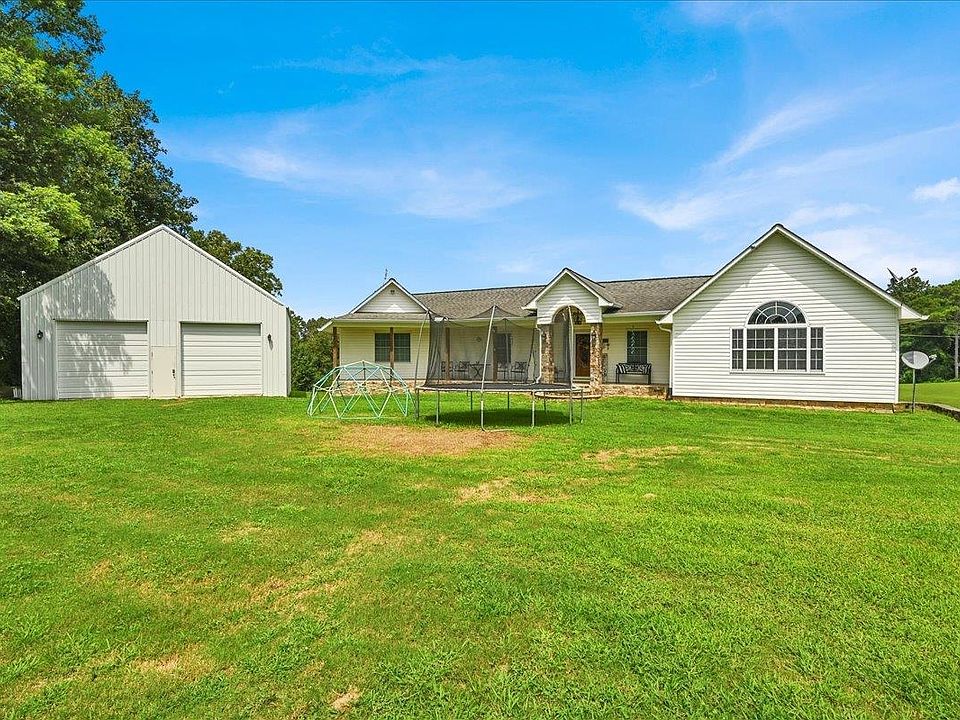 This is exactly what I think of when I hear someone talk about good old country living. Big house with a wraparound covered back deck overlooking 3.5 acres and a private pond. This home hosts over 3,200 sq ft of multi-level living with all of the space utilized to perfection. Kitchen has a beautifully crafted rock backsplash, granite countertops, custom cabinetry, an island, a bar with seating and a huge walk-in pantry. Living room is HUGE and has a large custom-made island that separates the living room from the dining room. Laundry room has a lot of cabinets, and a countertop for folding and is located on the main level. Primary bedroom has large walk-in closet and a glamour bathroom (rock stand-up shower, dual vanities and a soaking tub.) The finished basement area is currently used as 2 additional bedrooms with a half bath, a family room and a storage room. 2-car garage attached. Also has a detached 2-bay 30x40 workshop with a car lift and a built-in air compressor.