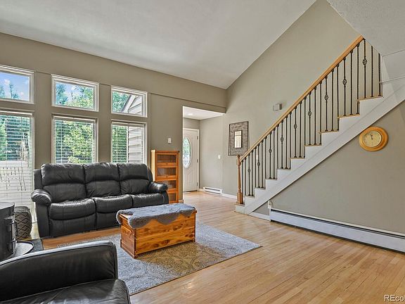 equipped with stainless steel appliances double oven and exhaust hood. There is a wonderful half bath on the main level. Upstairs you'll discover three nice sized bedrooms (one with an on suite bath). The other updated bathroom is off the hallway. The basement is unfinished waiting for your personal touch. The basement also has a working 3/4 bath. In the large backyard you will enjoy the patio with pergola Recently installed are new roof, gutters. Solar panels will be paid off at closing(approx. $35,000) The home is in Boulder Valley School District. Excellent location in Broomfield putting you within walking distance to dining, grocery, parks and open space. It is located conveniently to I-36 to get to Boulder or go south to swing downtown.