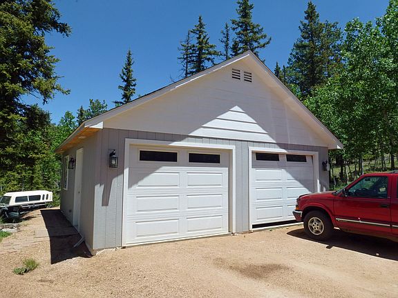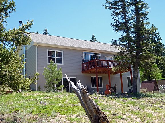 This well-built, 4-bedroom home is nestled in a private, park-like setting on almost 5 acres. It boasts one of the best views of Crystal Peak available. Well-maintained roads assure less than a 30 minute trip to Woodland Park. The living and dining areas have lovely engineered wood floors. The large kitchen with island has brand new stainless appliances and has an adjacent laundry/mud room and separate entrance. There is a huge partially-finished walk-out lower level which features a mother-in-law apartment complete with finished bedroom and office and full bath. Family room roughed in and ready for expansion. A cozy woodstove keeps this level warm. There is a large detached two car garage. Move-in ready!