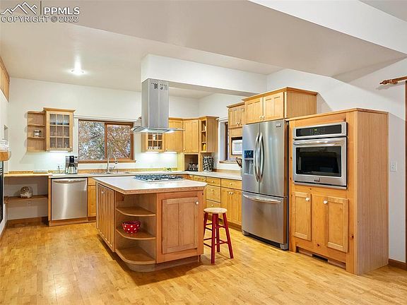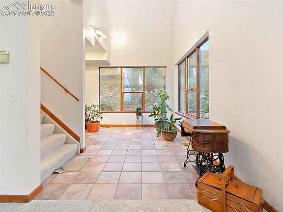 This log cabin style home is tucked away near beautiful rock formations on five acres of land just minutes from Fort Carson and Cheyenne Mountain State Park * SLASH YOUR UTILITY BILLS! * SOLAR equipment is owned – not leased – and utility bills average just FIFTEEN BUCKS per month! (feeds back to Colorado Springs Utilities – contact broker for more details on this awesome system) * NO HOA Fees * Enjoy your morning coffee looking out at the sunrise through the vaulted wall of windows in the great room or sitting out on your deck * The main level study space brings the outside in and provides flexibility * Beautiful views of the surrounding vista * Open kitchen with stainless steel appliances and cozy warm gas fireplace that flows into great room * Spacious dining area connects kitchen and flex space * Upstairs you have a bonus loft for use as office or reading nook, etc. plus a true office with significant sunshine plus views and a master suite with flow-through walk-in closet leading to the bathroom * Lots of light in lower level * Back deck with pergola is very private * Wrap-around front deck is great for soaking up sunshine * Detached over-sized 1 car garage plus added storage in separate storage shed * Feels so remote and private but just 15 minutes from The Broadmoor and also downtown Colorado Springs *