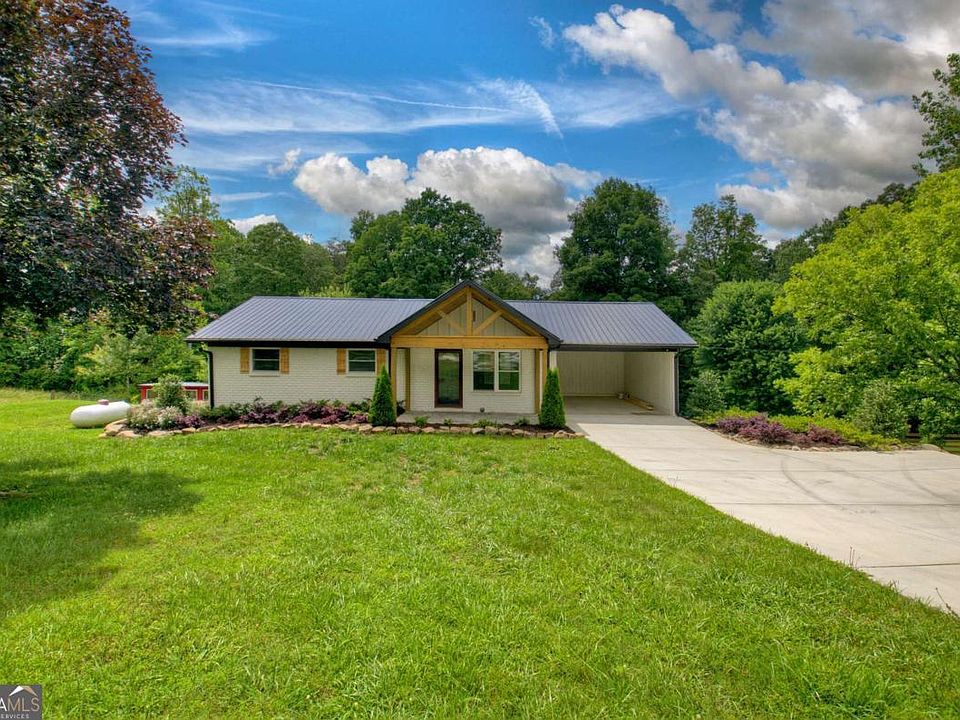 This beautifully reimagined whitewashed brick ranch offers a seamless blend of timeless character and thoughtful modern upgrades. The three-bedroom, three-bath residence features an open-concept design ideal for both relaxed living and effortless entertaining, highlighted by a stunning kitchen with abundant cabinetry, sleek surfaces, and generous gathering space. A spacious laundry room with built-in storage adds everyday convenience. Outdoor living is elevated on the oversized screened porch with a cozy fireplace, overlooking a newly landscaped 1.41-acre gently rolling homesite. The property also includes a new concrete drive, carport, and a charming red outbuilding ideal for storage or creative use. The full unfinished basement-already framed and outfitted with plumbing and electrical-offers exceptional potential for expansion, including a future den, bedroom, and bath, along with a pull-in garage and outdoor patio access. Completing the home are a brand-new metal roof and all-new lighting, plumbing, flooring, and appliances throughout. Move-in ready with room to grow, this peaceful retreat delivers modern comfort, enduring style, and storybook curb appeal. **Some interior photos are virtually staged.**