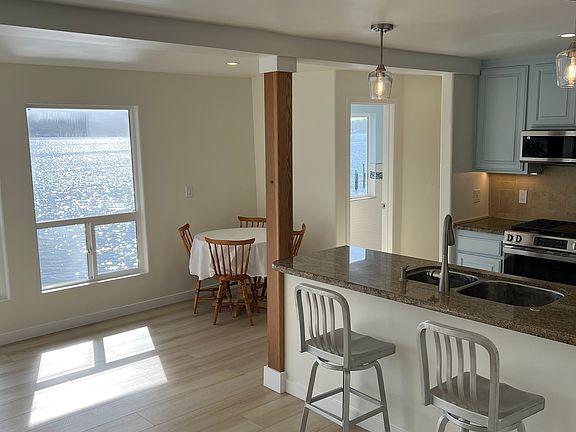 Imagine waking up to breathtaking Bay views and unwinding each evening with spectacular sunset panoramas from this beautifully remodeled waterfront unit. Every detail has been meticulously updated, featuring stunning travertine and Spanish marble in the kitchen and bathroom, alongside all-new appliances. This isn't just a home; it's a sanctuary where you can relax indoors and watch the wildlife dance on the water. Plus, you're just a short stroll away from The Tides restaurant for an evening out. Short long term leases available Owner pays utilities. Renter can transfer utilities for long term leases if requested. Can be furnished or unfurnished.