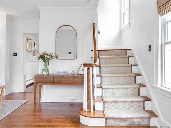 This exquisitely updated Dutch Colonial nestled in a rare nature-rich setting near Fairfield University, is so easy to love. Entry/mini-mudroom leads to sunny living room w/custom built ins. Sunroom/Office with French doors features delightful window seat flanked by more built-ins. Spacious and bright dining room can easily host a crowd. Updated white kitchen with new marble topped island and chic overhead light fixture functions well for any chef. Completing the main level is a full bathroom with walk in shower and laundry area. Upstairs, there are 3 bedrooms, the primary bedroom w/two closets. Brand New Fully Remodeled hall bathroom has a deep Slipper style soaking tub/shower, marble floor, and stunning double vanity. 4th bedroom on 3rd floor can also be used as a jumbo recreation/playroom. The oversized deck with strings of lights above is perfect for entertaining The extraordinary backyard vista with mature plantings and a gentle babbling creek exudes serenity. A full basement with plenty of storage and a generous 2-car garage completes this highly appealing package of rare setting, convenient location and move in condition. A five minute drive (under 2 miles gets you to sandy Jennings & Penfield Beaches, and the vibrant town center, including Gazebo concerts, restaurants, theatres and boutique shopping