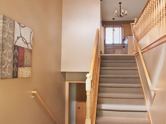 Beautiful home in wonderful location that features maintenance free vinyl siding, an attached and insulated 3 stall garage, covered front entry, rain gutters, in-ground sprinkler system, fenced in backyard and huge deck for entertaining on! The kitchen boasts stainless steel appliances and a center island with breakfast bar! Gorgeous master suite with walk-in closet and private bath. Master bath features dual sinks, a jacuzzi tub and separate shower with tiled surround! Fully finished lower level plus much more!