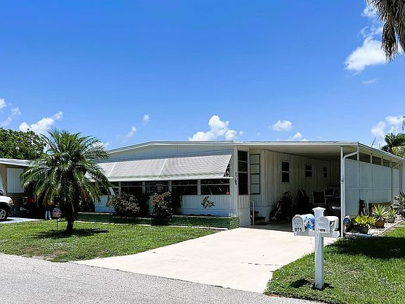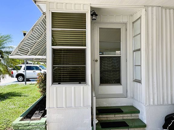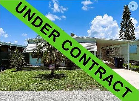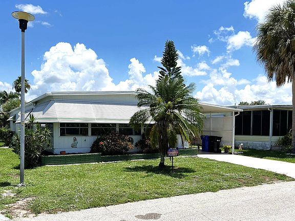 Cozy, comfy and updated this 2/2 home located in Bay Indies 55+ Community truly lives up to its Florida lifestyle. It's a wonderful place to bring together visiting family and friends and enjoy all year-round sun. You will be instantly impressed with the open adaptable floor plan and lovely condition of this home including the new soft closing kitchen cabinets, quartz countertop with double stainless steel inlaid sink, large size stainless steel refrigerator, an island with 4 burner cooktop with island seating and a view of living room and dining room with newer tilt sash windows. The dining room set and stools will remain. Add to this is a beautiful new vinyl laminate flooring, all weather roof recently coated, A/C 2015, vaulted ceilings and you have a maintenance free home. No need to worry about downsizing, this home has amazing storage. There is direct access to a feel of the outdoors off the living room to the lanai that has jalousie windows, screens and a portable A/C unit for year-round living. Both renovated baths mirror each other with amazing walkin glass enclosed tiled showers, granite vanities with double sinks and cabinets. Both have ceramic tile floors. The master with ensuite has two large closets with an inset dresser and accommodates a king bed. The guest room also has double closets with a 6 drawer dresser set in between plus desk area setup. Located just off the guest room is a side door leading to an attached 12X16 newly built shed housing the washer/dryer, workbench and tools and plenty of added storage. This is fully insulated with a second door leading out to an undercover carport. This outdoor area as you would expect another private outdoor entertaining area with a lattice fence for privacy and plenty of room to grill. This area is perfectly set up to easily screen in. This home is freshly painted with a very appealing paint palette and ready for you to bring your prized pieces of furniture and move right in. With a leafy tree and palm backdrop you will also reclaim your free time with lawn maintenance included. Bay Indies is located only 2.5 miles to the beach, shopping, restaurants and conveniently situated between three airports, medical facilities, intercoastal waterway and offers the most magnificent sunsets on the gulf coast. Historic Venice has plenty of cultural and art events to attend as well as inside the park. Here there offered three pools, clubhouses, tennis, pickleball, cards and clubs galore plus much more. This is truly an affordable paradise and the hot market has not let up in the Bay Indies Resort Community. Don't let the winter creep up on you and call us for more information. We live in the park and cover near and far for you. All listing information given to us is considered appropriate and reliable but should be independently verified through personal inspection by appropriate professionals. The lot rent is determined by the Community office and covers all amenities offered and more plus other expenses including property taxes and lawn maintenance.