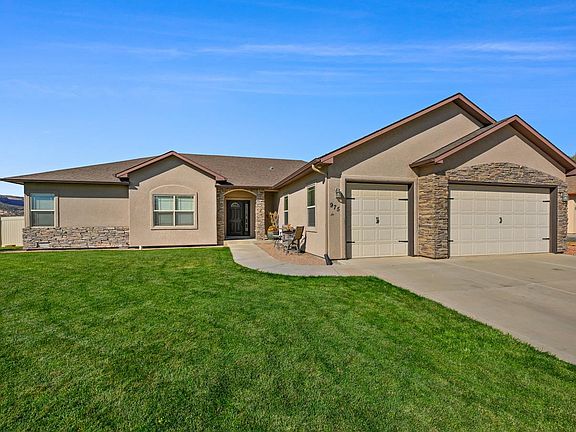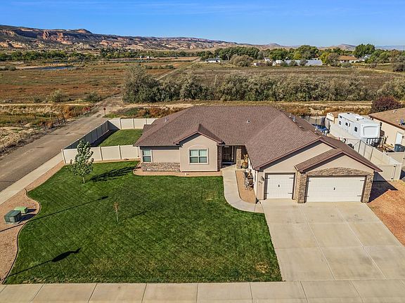 Welcome to Fruita and this incredible Colorado home! This huge corner lot features views of the Colorado National Monument, RV Parking, large front and back yards, a 3-car garage and a stunning home. Inside you'll find a large entryway that leads two directions to the main living areas and the primary suite. The main living areas are bright and open with a large living room featuring a gorgeous stone surrounded gas fireplace. Both the living and dining areas have plentiful windows to showcase the views and let in plenty of natural light. The kitchen is a dream with ample storage, stainless appliances including a gas range, and a walk-in pantry. Down the hall on this side of the home you'll find 3 generously sized bedrooms and a full bath. Down the other hall from the entryway, you'll find the laundry/mudroom with additional storage, a half bath for guests to use, and the primary suite. This space is a true retreat with a fantastic 5-piece bath attached, a seemingly endless walk-in closet, and private access to the backyard. This outdoor space has a large, west facing covered patio perfect for watching the Western Colorado sunsets. There is ample RV parking behind the fence (some can even be enclosed between fences) and plenty of room to play, garden, and relax. Located close to shopping, dining, schools, parks (city and state), downtown Fruita, the Colorado River, the Colorado National Monument entrance, and some of the best hiking and biking trails around, you'll never feel far from any adventure you can imagine! This is a fantastic way to live and play in one of the most desirable spots in the Grand Valley! Book your showing today.