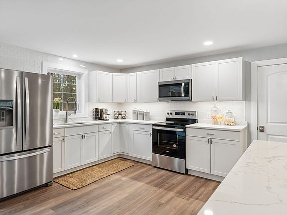 Warmth, wonder, and cozy retreats...welcome to 975 Meetinghouse Road. This holiday season, discover the gift of ''home'' at this meticulously redesigned four bedroom, three bathroom Colonial. Offering a harmonious blend of comfort and sophistication, no detail was left untouched at this stunning 2,652 square-foot safe haven. Upon entry, the dramatic foyer welcomes you with soaring cathedral ceilings, beautiful vinyl flooring, and a functional open floor plan that sets the tone of the home. The kitchen was opened to the family room and dining room, unifying its sense of space and maximizing the natural light flow throughout the home. Quartz countertops, a large walk-in pantry, stainless steel appliances, timeless subway tile, and white cabinetry add to the design. As you move into the mudroom, you are captivated by the sun-filled back entry that illuminates the space, which could also be used as a second dining or study area. The well-proportioned family room invites morning light through oversized windows and is thoughtfully curated for both relaxation by the fireplace and entertaining loved ones. A first-floor spacious bedroom with a closet, a full-size bathroom, and a large deck with a patio overlooking the private 2.23 acre lot completes the first level. On the second level, retreat to the primary suite with beautiful vinyl flooring, a walk-in closet, and an expansive bathroom with a stunning tiled shower, a double vanity with marble countertops, and gorgeous tile flooring. Two generously-sized bedrooms, a third full bathroom, and a separate laundry room completes the second floor. Additional features include a newly built attached 2-car garage, new framing, siding, roofing, windows & doors, heating system, drywall, insulation, and a new front porch with composite decking. Within minutes to the beautiful beaches of Wells, Downtown Kennebunk, i-95, local schools, Country Clubs, shops, and restaurants! Make it yours today!
