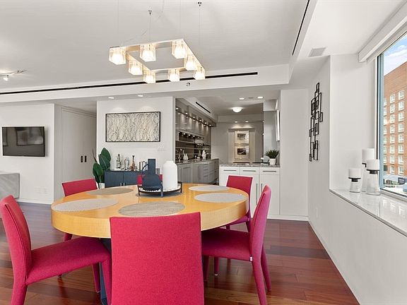 Savor floor-to-ceiling Charles River views in this 3-bedroom corner unit at the Residences at Charles Square. This stunning condo offers bright, open-concept living with a private balcony overlooking lush greenery. Renovated in 2005, the space has a designer kitchen, high ceilings, wide-plank cherry wood floors, and a kitchen that opens to the dining and living areas. The primary bedroom features an en-suite spa-like bathroom and a walk-in closet. The second bedroom enjoys abundant natural light, while the third has a built-in desk with a view. The glamorous second bathroom has a walk-in shower. In-unit laundry and deeded garage parking with elevator access ensure everyday convenience. Building amenities include a 24-hour concierge and beautifully maintained common areas. Located in the heart of Harvard Square, you're steps away from top restaurants, boutiques, theaters, and bookstores—experience premium living in one of Cambridge's most sought-after residences.