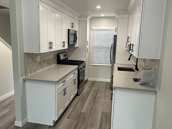 Complete remodel! Fresh and ready to move in. New bathrooms, new kitchen, and all new paint and flooring. Has 3 bedrooms and 2 full bathrooms upstairs with a half bath downstairs. Everything is new. Complex has one assigned covered space. Close to downtown and across the street from Nob Hill Supermarket. Owner pays water and garbage. Tenant pays PGnE and cable/internet. No pets and no smoking.