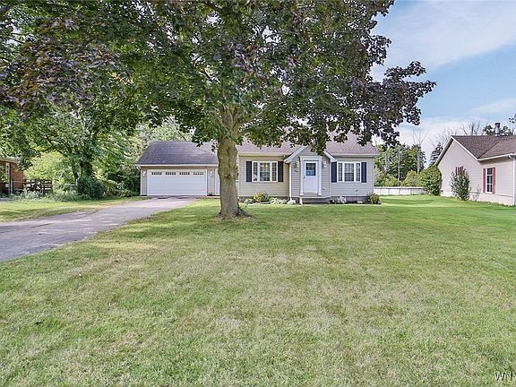 Nestled on a tree lined street in the Town of Lewiston, this adorable 3-bedroom Cape could easily live like a ranch with a bedroom and full bath on the first floor. Nothing to do but unpack. Step inside to the nicely finished room between the garage and house. Currently it is being used as an office (the 15x12 rm, approx. 180 sq ft is not included in the sq ft listed as it is not heated) with a slider out to the new rear patio, this could easily be a family rm or den too. The remodeled kitchen is bright and features a breakfast bar that opens to the formal dining room. Updated full bath with skylight, first floor bed and spacious living room round out the first floor. Upstairs you will find two more generously sized bedrooms. With tons of closet space and a full bsmt. there is plenty of storage areas. C/Air, Hi-efficiency furnace approx. '09, HWT '18, 150 amp elect., glass block bsmt. windows, updated windows throughout. 2 car attached garage. Sitting on just over a half-acre lot with a new patio, fire pit area and park like yard. Niagara Wheatfield school district. You are going to love this one!