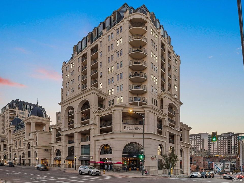 Welcome home to this stunning condo in the beautiful Beauvallon building! Experience sophisticated urban living in this beautifully updated two-bedroom, two-bath condo at the sought-after Beauvallon community. Over 125K in upgrades in 2022! This stunning residence showcases thoughtful updates throughout, including a brand-new kitchen, two stylishly renovated bathrooms, and elegant new vinyl flooring. The gourmet kitchen is an entertainer's dream featuring all newer stainless appliances, quartz counters, wine cooler and a breakfast bar with seating. Relax and unwind in the luxurious jetted tub, or entertain guests on your expansive private terrace, surrounded by lush plants and trees - a rare city oasis complete with a cozy firepit. The firepit and the fountain will stay with the property, and there is a Rain Bird automatic watering system for the terrace trees and plants. All of the furnishings are negotiable. This dog-friendly building's amenities are first class - 24/7 security, concierge service, an outdoor pool and hot tub with unobstructed city and mountain views. Enjoy the outdoor gardens, fountain, and community barbeque, also located on the 5th floor rooftop. The property is located within walking distance of restaurants, museums, and the Golden Triangle Creative District. The complex will be installing six EV charging stations soon! Hurry on this stunning condo!
