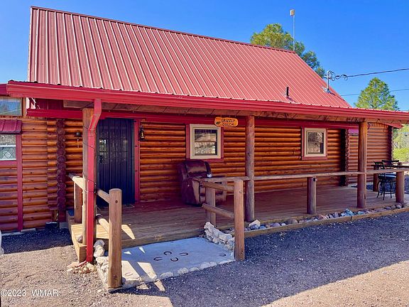 This beautiful log home is sitting on over an acre in the desired Timberland Acres. You can spend many cool nights sitting on the large rear deck listening to the wind in the tall pine trees. There is also a large welcoming front porch. This home has a nice metal roof and is well maintained. It has plenty of potential with the large gathering room, open kitchen, and large bedrooms. Don't miss the large loft that has endless possibilities! There is laundry inside and 2 bathrooms! Many unique finishes including stained glass windows & stone work. It also has upgrades including mini split units to control the temperature, new windows, plus RV hookups! Don't forget the 2 story detached garage plus an additional storage shed for all your toys! This mountain home will not disappoint you!