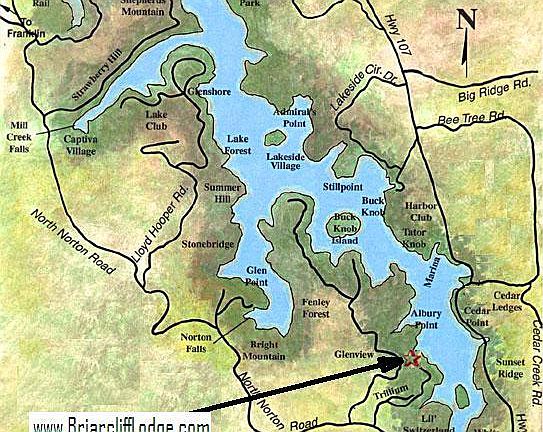 Briarcliff Lodge is a relaxing lakefront mountain home situated near the charming towns of Cashiers and Highlands in North Carolina and sitting directly on the shores of Lake Glenville. Only a little over an hour from funky Asheville, our home is the perfect place to get away with friends and family. Our home consists of 3 full floors, each with their own deck, 2 full kitchens, 4.5 bathrooms, 3 fire places, 3 TV's (Hulu, Netflix & cable), and many cozy seating areas; all which make up almost 4,000 square feet. 4 bedrooms, each with king beds and full bathrooms, as well as a queen murphy bed and an air mattress available make our place comfortable for up to 12 - 15 guests. Our newly finished basement makes for a great space to entertain & let loose. Equipped with a second kitchen, pool table, large flatscreen/ seating area and a foosball table. The outdoor space makes our home the perfect place for outdoor/indoor living; with a new dock/swim platform (20x20) you can dock your boat and personal water craft or rent on lake, 2 outdoor firepits for fun entertaining, grill out on the deck or visit local restaurants in town. Outdoor fire-pit off main level overlooks Lake Glenville for rustic round-the-fire gatherings. A second outdoor fire-pit is located close to the dock.