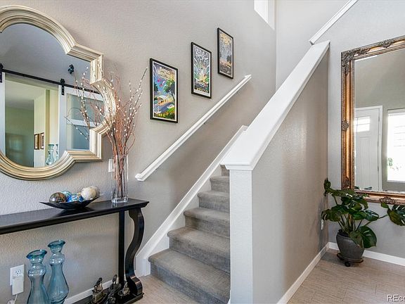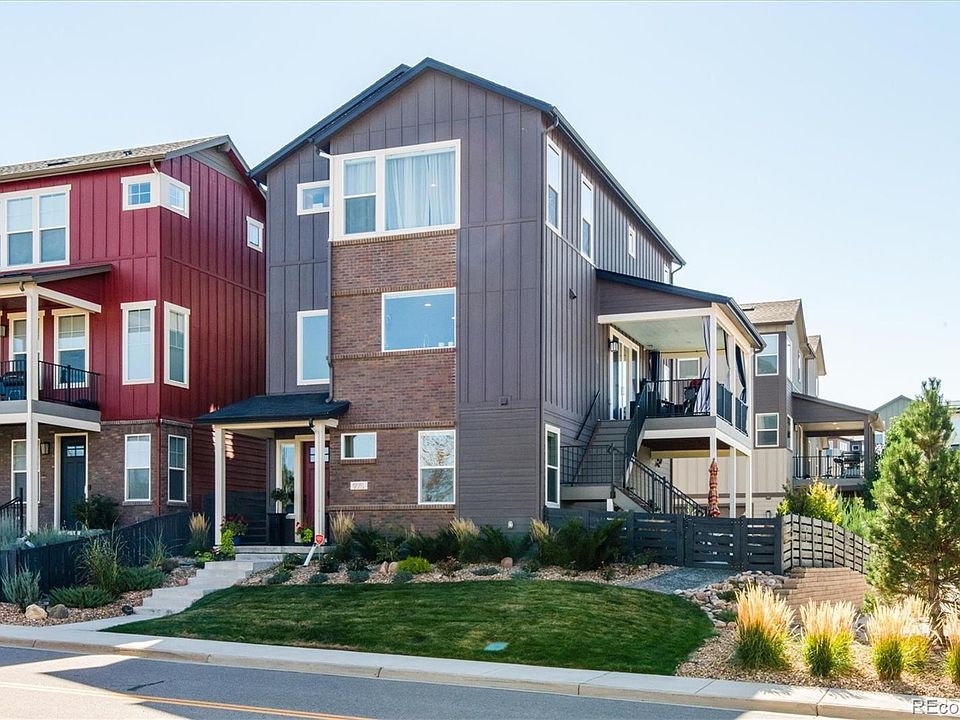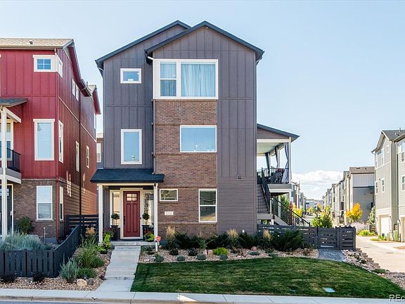 Welcome home to this beautifully appointed Shea home located on a premium lot in desirable Crescendo at Central Park. With nobody directly to one side or in front of you, you are sure to love this 3 bed/4 bath home. With over 2500 finished square feet, this lovely home offers a bright, airy and open floor plan and is perfect for entertaining. Lower level features a study with barn door for added privacy and private ensuite 1/2 bathroom, as well as a mudroom. The main floor showcases an open floorplan perfect for entertaining with a spacious, gourmet kitchen with upgraded stainless steel appliances including a gas range and hood, quartz countertops, custom backsplash, large center island with seating, upgraded, custom painted, soft close cabinets and luxury vinyl plank flooring. The formal dining room is open to the great room with gas fireplace and cabinets, perfect for those cooler Colorado days. Main floor laundry room with shelving and the powder room round out the main floor. Upstairs you'll find the primary bedroom that boasts beautiful mountain views along with a walk-in closet with custom built ins and luxurious bath with spa shower and dual sinks, as well as 2 more spacious secondary bedrooms with fans and a full bath with upgraded tile detail. Oversized 2 car garage is finished and insulated. The epoxy floors and the access door to the outdoor oasis are the icing in the cake. You will love relaxing on your covered deck at the end of a long day or head down to your expanded covered patio to enjoy your fully fenced, low maintenance turf yard. Walking distance to just about everything - Central Park, shopping and restaurants, UC Health Hospital, and Children's Hospital. Easy access to C-470, RTD Lightrail, downtown Denver, the mountains and more! HRCA include all 4 recreation centers as well as miles of trails and numerous parks. Welcome home to this lock and leave property. You will love to call this house home.