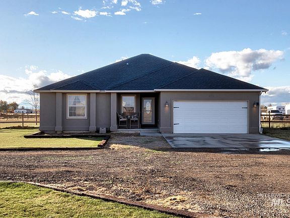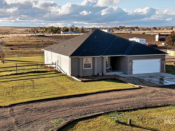 Looking for a beautiful home that sits on 4 acres with the ability to park your RV, build a barn/shop? Want to have a few animals and spread out? This home is for you. Drive up to the home and enjoy the new circle driveway or park in the 2 car garage. Double gate to the backyard already installed. The cozy new electric fireplace is a focal point of the vaulted living room. The floorplan is perfect with a great entry, split bedrooms, spacious primary bedroom with 2 large closets, shower and a soaker tub. Kitchen features a breakfast bar, eat in dining room and door to large covered patio. You will love having bbq's and watching the unbelievable sunsets. New Furnace with UV light for clean air, New A/C unit, Well Pump and sprinkler system. Call today to view. Open House Saturday 11/11 at 11a.m-1 pm.