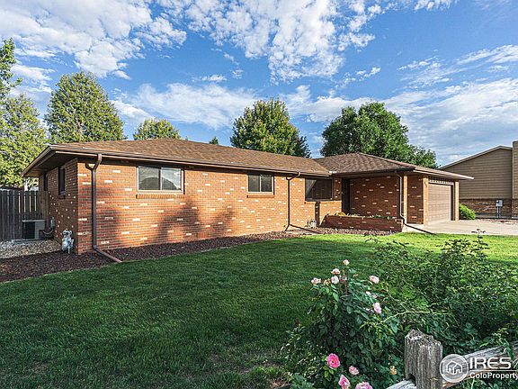 The perfect brick ranch home in a mature desirable Loveland neighborhood. Centrally located near all activities/amenities, Downtown, and minutes from 1-25. This updated 3-bedroom 2-bath home is complete with a Woodland wood burning stove, Wine cooler, Granite countertops, soft close cabinets with pull out drawers, and tons of charm! Beautifully landscaped yards including backyard patio power awning and horseshoe pit make this ideal for entertaining. Leaf guard gutters, large storage shed, NO HOA and move in ready! This is a must see!
