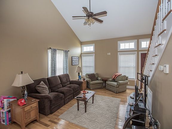 End unit townhome. Low maintenance living. Open floor plan .Living and dining rooms have beautiful hardwood floors and vaulted ceilings. Kitchen features granite, maple cabinets and stainless steel appliances. Half bath and laundry room on first floor. Tile baths. Back deck has great long range views. Home owners pay $70 per month for lawn care and snow removal. Washer/dryer remain Move in ready