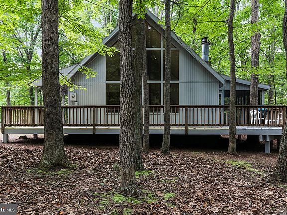 Enchanting Chalet nestled in The Woods offering you 3 bedrooms and 2 baths. This home will check all your boxes. Central heat and air, a relaxing 12x16 screened in porch, covered entry deck, large 8x30 open deck and a regulation horse shoe pit. Plus, lots of charm! This chalet boasts a large wall of windows, cathedral ceilings, and cozy wood burning fireplace with stone hearth in the great room. The natural wood on floors and walls creates a rustic but warm interior you will enjoy for years to come. The owners suite in the loft features a walk-in closet, an updated en suite bathroom complete with custom ceramic tile walk-in shower and double bowl vanity. Natural light everywhere. This home is privately situated on a 0.67 acre wooded lot under a shady canopy of trees. Offered move in ready with furnishings. See list of items that will convey. Seller just painted the exterior of the property. Class B membership available