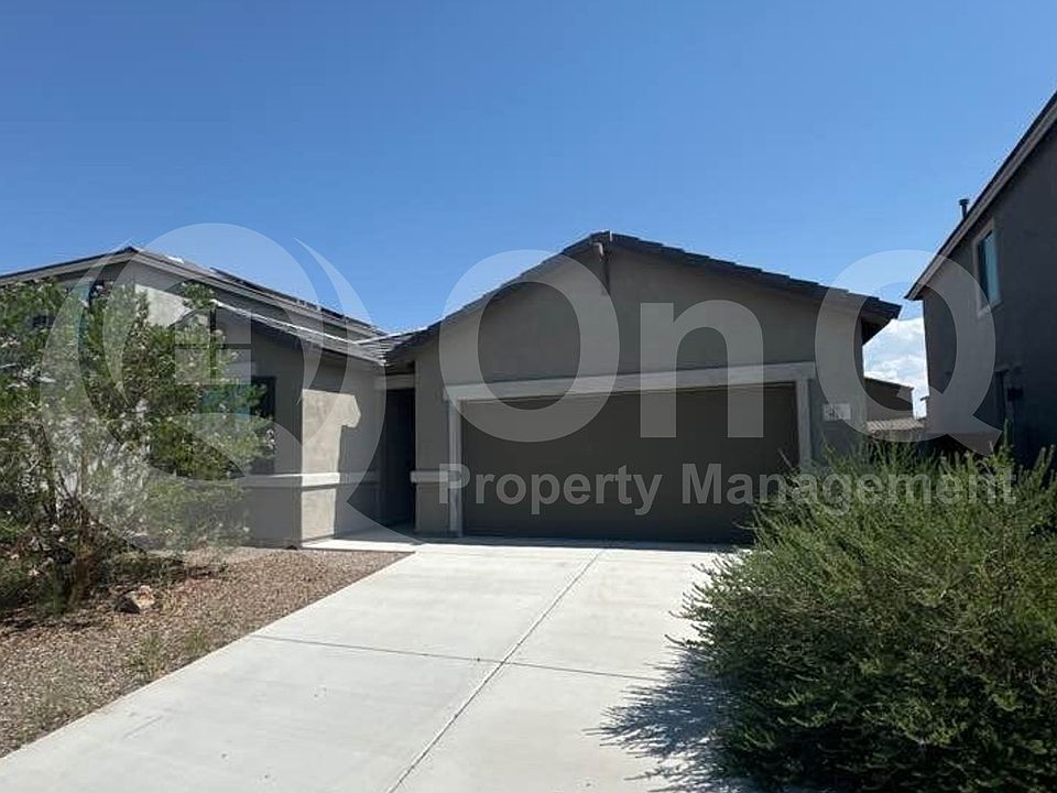1,590 SQ FT! 3 bedroom, 2 bath home in Entrada Del Rio! 2021 build with modern upgrades + smart home features throughout. Desirable single story floor plan with welcoming great room entry! Stunning eat-in kitchen with included appliances, & expansive breakfast bar. Open concept living/dining with sliding door patio access! Great entertainment space. Neutral interior with tile flooring throughout! This home offers 3 nicely sized bedrooms. Primary suite with full bath + walk-in closet! Blinds + ceiling fans. Laundry room with included washer/dryer. Enjoy a low up keep backyard with covered patio! 2 car garage. Entrada Del Rio is a desirable community offering community pool + spa, fitness center, community lake, sports courts, playgrounds, & biking/walking trails!