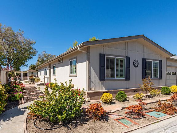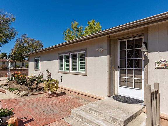 Welcome to Hillview Estates! This is a most desired 55+ community in West Santa Paula, as you own the land beneath your unit. This inviting 2 bedroom plus den/office & 2 bath home is in great condition. With over 1,500 sq ft this home is very spacious and has many windows offering lots of natural light and white shutters. You'll enjoy the cozy living room complete with fireplace allowing space to entertain family and friends. The open kitchen design offers plenty of counter space and cabinets. Plus, the sale will include the refrigerator, washer and dryer; all in good condition. In addition, you have a main bedroom ensuite with a large walk-in closet on one side of the floorplan with the other two bedrooms on the opposite side allowing for privacy. All bedrooms are good size and there is plentiful closets throughout the home. There are additional benefits of newer exterior and interior paint, newer roof and more. You will also appreciate the enclosed garage with direct access into home as well as a sunroom. This space could be used as a gardening space, game room or just a quiet peaceful spot to relax. The surrounding yard has been lovingly cared for and is bursting with flowers and shrubs throughout. The Hillview Estates HOA includes the benefits of a community pool, clubhouse, spa, gym area, RV parking area, dog park and more. Lastly, this home is in close proximity to Highway 126 as well as local shopping. With all this home has to offer, it won't last long. Make an appointment to see it today!