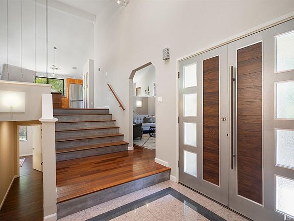 Tastefully updated 2,592 square foot, Custom Single Family Home uniquely situated on a serene, private cul-de-sac and surrounded by beautiful landscaping with many mature fruit bearing trees. Home features a desirable split level floor plan, soaring vaulted ceilings, an abundance of natural light, 4 large bedrooms, an office (5th bedroom) and 3.5 Baths. Property is generously equipped with: updated kitchen, high-end cabinetry and appliances, master suite with 2 person Jacuzzi tub, Walk-in closet with cedar blocks, guest bath with a steam shower, hardwood flooring, 2 fireplaces, wet bar and newly remodeled balcony. Ample space to spread out and host family and friends in the spacious formal living room, family room and large formal dining room. Home is conveniently located near Bart station, 680 Hwy, Parks and many shops.