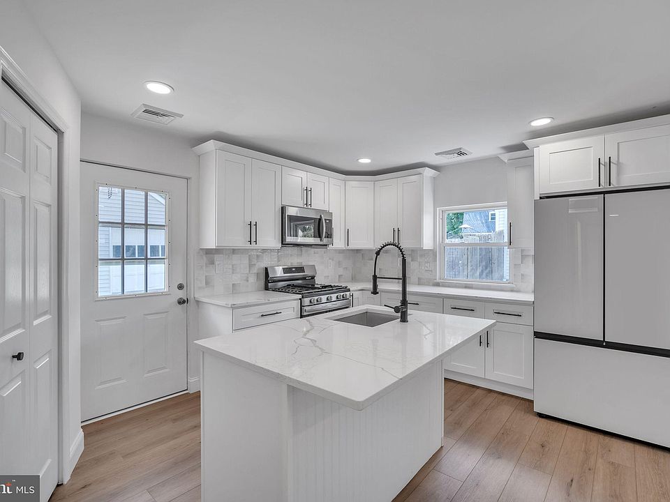 *** OPEN HOUSE Saturday, June 29th 1:00 PM - 3:00 PM *** FULLY REBABBED 3 bedroom 2 full bath ranch in Southampton! Inviting open concept living. Walk through the front door into living room and eat-in kitchen area with beautiful engineered wood flooring throughout. Kitchen contains brand new beautiful white cabinets, white beautiful white and gray accent back splash, all modern stainless steel appliances and beautiful white Quartz counters including over island perfect for entertaining, adding stools and deep sink in island. Walk down hall and to fully renovated fall bathroom with modern vanity and tub/shower. Also 2 guest bedrooms. Keep walking down hall until you get back to large owners suite addition with its own personal bathroom in suite with modern vanity and fully tiled expanded shower to soap box on accent tile wall giving the new property owner a rich luxurious feel to their every day living. House contains plenty of LED recessed lighting throughout and laundry area off kitchen. Oversize detached garage in rear which is perfect for storing a vehicle and still leaving ample room for storing tools, lawn equipment or a wood shop. Natural gas forced air heat and central air. Brand new water heater - 2024. Private backyard that backs to the Upper Southampton Community Center which includes playground, ball fields and walking trail for dogs. Walking distance to downtown Southampton which includes plenty of shopping and endless varieties of fine dining options. This property is ONE FLOOR living at its finest ! Make your offer today !