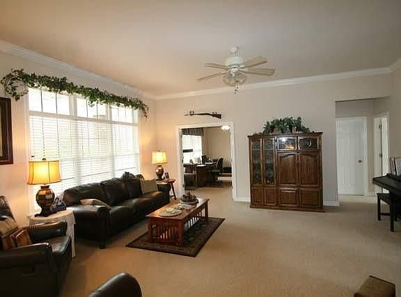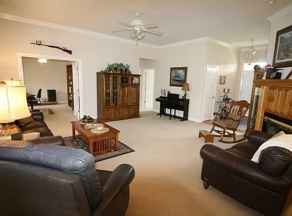 This house is a GEM. Immaculate! Beautiful! 4 Bedrooms(one has French Doors and is used for office), 2 1/2 Baths. Formal Dining. Open Kitchen with lots of cabinets. Sitting area in Master Bedroom. Crown Molding. 10ft ceilings in Living. Gas Fireplace. Split bedroom plan. Heated three car garage. Additional outbuilding/garage (40X28) with three overhead doors (9X10). Covered patio. Front porch with glass storm door. Great location! Sits on 1.6 acres. Private well. Garden area. One owner.