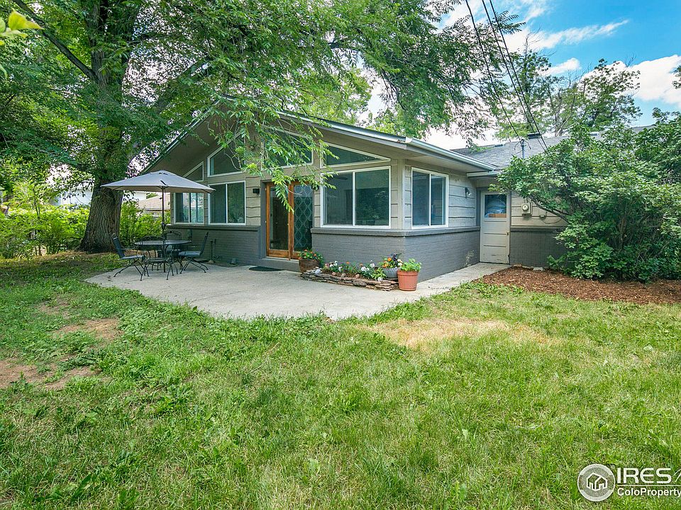 Welcome to this lovely ranch home in Table Mesa. Situated across from a community park, this 3 bedroom, 2 bath home has 1500+ main floor living. As you enter the home you flow into a bright, open-concept living, kitchen and dining area. The updated kitchen boasts soapstone countertops and cherry cabinets and connects to an airy sunroom with vaulted ceilings and skylights. French doors open to a lush and private yard in summer with stunning Flatiron views in winter. Close to trails, the SKIP, shopping, and cafes as well as award winning schools, don't miss this quiet beauty of a home.