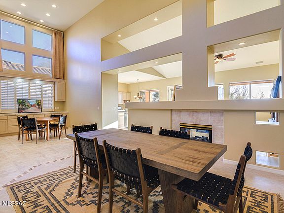 BIG SALE!!! - Within a prestigious golf community, enter 20-foot soaring ceilings, living and dining room bathed in natural light. Dynamic views perched high on the hill of the neighborhood; 3 bedrooms 2 bath, 2454 square feet with versatile den. Expansive views of the valley city lights and gorgeous Tucson mountains. Open floor plan with easy living. 2-sided fireplace and world class golf. Primary bedroom features a serene, private setting with access to breathtaking mountain views, dual sinks and separate soaking tub. Open-concept floor plan & soaring ceilings seamlessly integrates the living areas, providing ample space for relaxation and entertainment. Manned gate with easy access to pool, spa, and fitness center complemented by the security and privacy afforded by the controlled acces