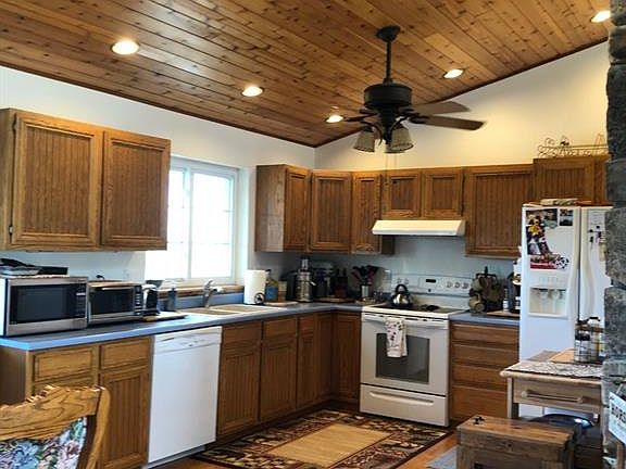 Prepare to be impressed with this beautifully, well maintained fully fenced 4.75 acre horse and multiple animals property, featuring new exterior stucco and stone siding on house with newly installed roof, barn, shop, overly large septic system and awesome well. ~ Awesome remodeled home offers redwood deck w/western red cedar ceiling w/recess lighting & remote fan/light, same interior cedar ceiling, stone wood burning fireplace, oakwood floor, upgraded bathrooms, doors, windows & mantles, knotty alder trim, yard gates & water hydrant, 2018 septic system. ~ 48x36 custom steel barn offers 3 12x12 Priefert horse stalls, 2 Nelson automatic heated water, rubber matt/cement stalls, 2 60x24 paddocks, hall water hydrant, cupola providing barn airflow, 36x12 hay loft & storage, 20x12 heated tack room, exterior motion detector lights, interior hall lights & individual stall lights, insulated roof, plus 8 indoor/outdoor kennels in barn to keep your animals safe, secure, and comfortable. ~ 40x30 custom shop offers 14 ft side walls, 12x12 insulated area with loft above, new radiant heat (needs to be hooked up to propane tank) w/black pipe installed, 220 volt runs heavy equipment, 6 inch reinforced fiberglass concrete, insulated interior walls & ceiling, 4 skylights, 12x12 insulated overhead door & opener, custom work benches, 2 service doors, padlock door entry. ~ Converted 4 car garage features indoor/outdoor animal runs, padlock door entry, gas heater, swamp cooler, steel insulated garage door, 75 gallon gas water heater, steel entry door w/ screen door, newer 2020 2 car garage section has washer & dryer, gas heater, swamp cooler, steel entry door, steel insulated garage door.
