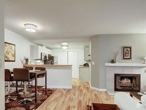 Great value in this comfortable and spacious home that has everything you need!  Large walk-in closet in the ample, east-facing bedroom, dining space AND eating bar, separate laundry space w/washer/dryer & loads of storage, oversized deck and lots of room in the updated living space accented with a warm & cozy fireplace... AND low home-owner dues!!, secure parking and extra storage unit.  Let's talk about good value!  The home faces greenery to the east, away from the bustle of Greenwood but still so close to bus lines, many shops & restaurants and easy arterial & freeway access.  These condos are not often for sale. A lot of bang for your buck= value!