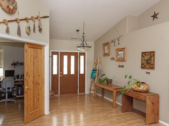 AWESOME HORSE PROPERTY, 11.71 acres perimeter fenced with no-climb fencing also has 1296 sqft Barn Master Barn with 3 turn outs 3 stalls and arena. Water at the barn. 2224 sq ft main home with Leased Solar. Home has 2 gas fireplaces, great room, solid surface counters in the kitchen, cultured marble in bathrooms. Underground propane tank. Workshop in 2+ car garage was constructed so as possible to convert to 4th bedroom.