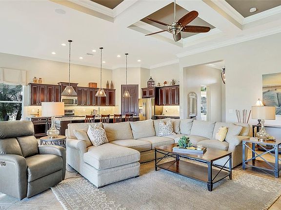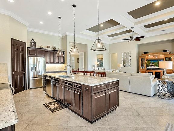 THE QUARRY'S BEST DEAL! VACATION LIFESTYLE IN THE QUARRY! This "Dartmouth I" features 3 bedrooms, Den, 3 baths and is situated on a lakefront lot with wide views over the lake. Catch the sunset 365 days a year! Thru the front door, you will be greeted with a wide open Great Room style floorplan with 12' ceilings, coffered ceiling, spacious Kitchen with island and large eat-in kitchen area. Disappearing sliding glass doors lead you to the lanai complete with space heaters and heated pool. Other fine appointments include Electric Roll Down Shutters on the lanai, crown molding throughout, closet built-ins, solid wood cabinets & granite countertops, plantation shutters & custom window treatments, special order lights & fans, extended garage (28'x28'), custom epoxy garage floor, central vacuum system, and more! The Quarry - A Lakefront community offering Boating, Golf, Tennis, Pickleball, Bocce Ball, Tiki Bar, Restaurant, Pool-Side Food/Drink Service, Gym, Social Activities and more! The Quarry offers over 500 acres of lakes that can handle boats & jet skis (Docks available for lease). Private Golf Club (Not Mandatory/Memberships available) with 18 hole PGA Level Hurdzan Frye course.