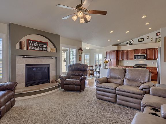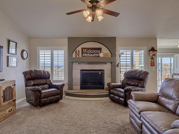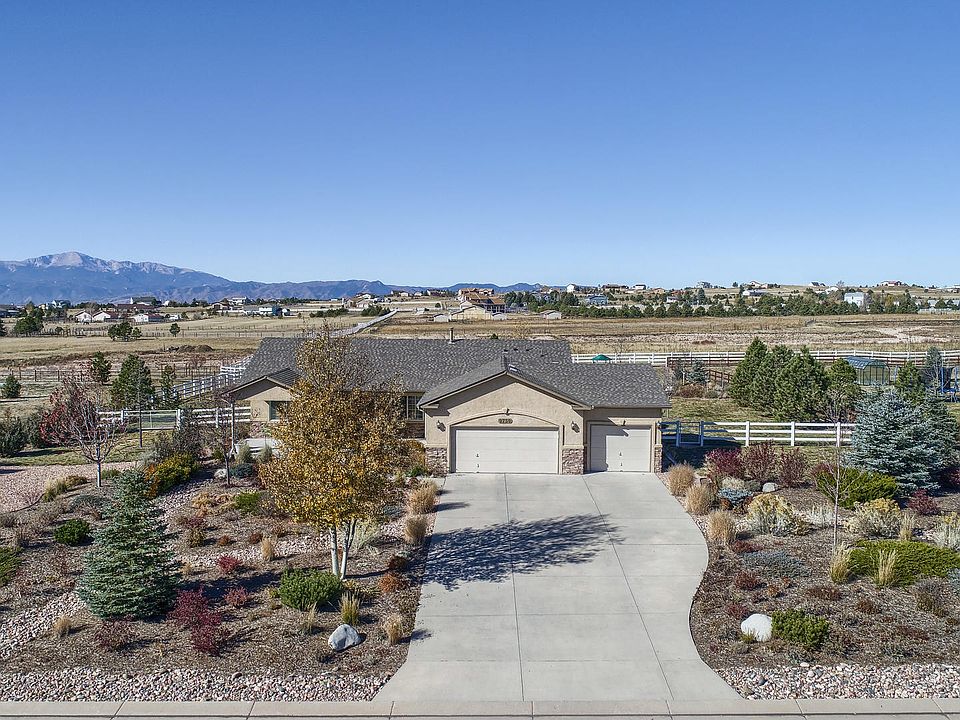 Welcome home to this beautiful ranch style home on one acre boasting Pikes Peak views. With spacious rooms and large windows, this open floor plan is the perfect blend of formal and casual living - great for entertaining with comfortable livability. You are greeted by extensive hardwood floors that lead to the great room with gas fireplace & soaring ceilings. The perfectly appointed kitchen features granite counters, large center island, stainless appliances with gas stove, generous cabinet space and adjoining nook. The formal dining room is adjacent to the great room and kitchen. Unwind in the main level master suite providing adjoining 5-pc bathroom, walk-out to patio and walk-in closet. There are two spacious secondary bedrooms on the main floor just steps from a full bathroom. Host the Big Game in the sprawling finished basement with large family room, gaming and billiards area, and wet bar. An additional bedroom, bathroom and ample storage room complete the basement. Step out to the patio overlooking the beautifully landscaped, fenced back yard, Pikes Peak & the Front Range. The patio with stone fireplace is perfect for entertaining on summer evenings. Excellent location, just minutes from schools, shopping & dining with easy access to Peterson & Schriever AFB. This move-in ready home offers: new upgraded carpet and padding, new microwave, pull out shelving in cabinets, plantation shutters, new smoke/CO detectors, two water heaters with recirculating instant hot water, high efficiency furnace, new sliding doors to back patio and much more. Visit this move-in ready home today!
