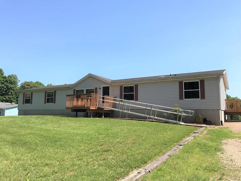 Spacious country home sits on an acre w/ room to entertain indoors & out. Open kitchen w/ appliances, ample oak cabinets, island, lots of counter space, breakfast nook & walk-in pantry. Multiple options for living space; living & dining rooms, family room/den w/ beautiful stone-surround wood-burning fireplace. Over-sized owner's suite w/ garden tub, standing shower & walk-in closet. Two addtl good-sized bedrooms w/ large closets allow for ample storage. This home has a ramp, heavier than typical insulation & side registers throughout. Full walk-up basement offers 2,000 SF of space for storage, workshop & or hobbies.Exterior offers quality above-ground pool w/ fenced surrounds, multiple decks & 30x48 det garage w/ 8ft garage door & opener as well as 14ft garage door & electric. Call today!