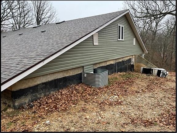 Almost 15 acres of opportunity here only minutes outside of Springfield! You can look for a lifetime and probably see another home with this much potential! This earth contact or earth berm style home is nestled away on +/-14.8 privated acres. The home has had extensive work done in preperation for remodeling, including installation of proper egress window wells. Main level is now a blank canvas, make it whatever you want. The main level is framed for 4 or 5 bedrooms but the upper level is basically a 2 bedroom, 1 bath home right now with its own kitchen and even a seperate entrance. Could you live in the upper level while building out the main level? I don't know. The footprint is 3516 sq ft but that doesn't include the upper level...so if you need a big house this is a golden opportunity! Not sure if this is a deal or not? Think about the cost of that huge new deck and new roof!