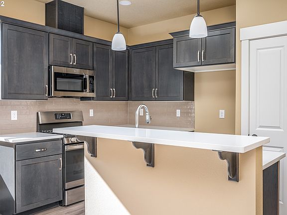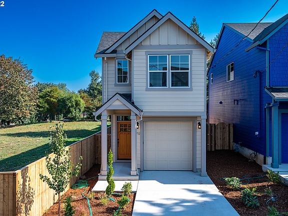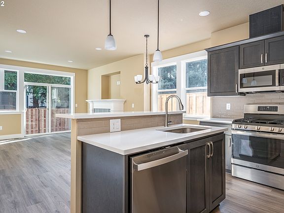 A cooks kitchen with island, quartz counter tops, stainless steel appliances & Micro-hood. Water-resistant, laminate floors. Master bathroom with tile floor, double vanity sinks & walk-in closet. High efficiency gas furnace. One of eight new homes on brand new street! Homes with garages are going away in Portland! Special pricing for SDC waiver qualified buyers. $469,900 for non-SDC qualified transactions. [Home Energy Score = 10. HES Report at https://rpt.greenbuildingregistry.com/hes/OR10206665]
