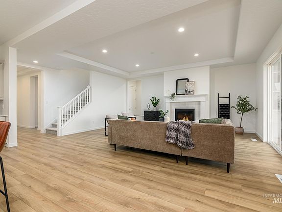 The Ashford features refined architecture and thoughtful indoor/outdoor living. Sophisticated tray ceilings punctuate the foyer hallway and spacious great room with desirable covered patio access. The well-appointed kitchen is complemented by a sizable casual dining area, a center island with breakfast bar, plenty of counter and cabinet space, and a roomy walk-in pantry. The secluded primary bedroom suite is defined by a stunning tray ceiling, a generous walk-in closet, and primary bath with a dual-sink vanity, a relaxing soaking tub, a luxe shower with seat, linen storage, and a private water closet. Secondary bedrooms with ample closets share a full bath with a separate dual-sink vanity area. Overlooking an expansive flex room with a covered deck is 2 additional bedrooms with a shared hall bath upstairs. Additional highlights include easily accessible laundry off the everyday entry, a powder room, and extra storage. Home is under construction and photos similar. 3 car garage. BTVAI