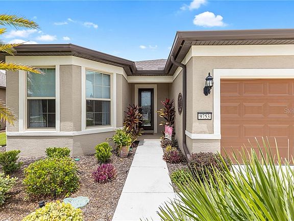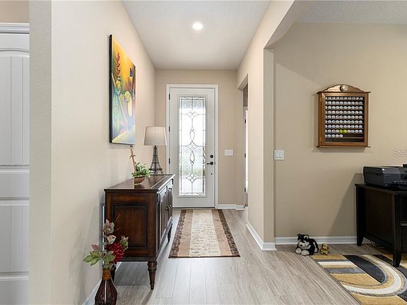 This captivating home in Stone Creek will not disappoint. The 8 ft full lite decorative glass front door welcomes you. Inside this 2BD/2BA Abbeyville model you will find a nice open floor plan, with a flex room that can be used as a den, office, or craft room. Upgraded interior Cheyenne doors. Whirlpool Stainless Steel appliances, granite counter tops, flat shaker panel Maple cabinets with roll out trays with plenty of cabinet and counter space in the kitchen. Both bathrooms have upgrades including Comfort Height toilets and counters, tiled showers with walk-in shower in the master bath. Inside laundry room. Upgrades in the garage include a 4' extension to comfortably park a larger vehicle, storage shelves, utility sink, and garage screen. You will enjoy watching gorgeous sunsets from your screened lanai overlooking the Meadow (private back yard). Professional landscaping in the front and back yard completes this beautiful home. Enjoy resort-style living with awesome amenities. Popular location, stunning property, make an appointment to see today!