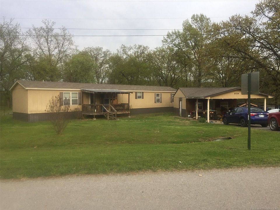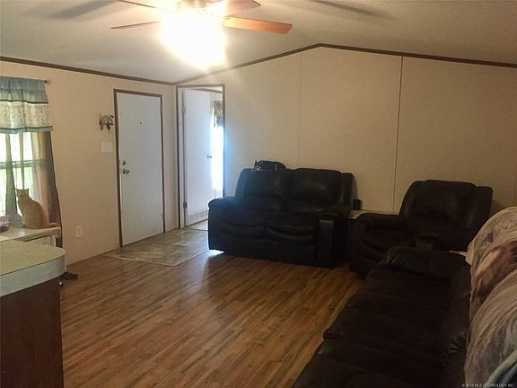 A must see! Conveniently located on Highway 51 on the outskirts of Hulbert. Spacious 3 bedroom, 2 bath with open floor plan. So many extras on the property; partial fencing, mature pecan, multiple outbuildings including storage, shop and newer built barn.
