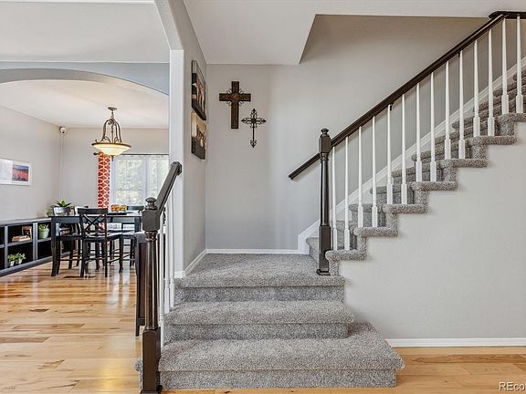 Welcome to this charming 4 Bdrm/4 Bath home offering a perfect blend of comfort, elegance, & convenience.As you step inside, you're greeted by the inviting atmosphere of the main floor, with a formal living room & dining room, with high ceilings & exquisite hardwood floors. The family room also boasts hardwood floors & a cozy fireplace, creating an ideal space for relaxation & entertainment.The main floor is further complemented by a convenient laundry area & an additional powder room, catering perfectly to the needs of guests. The spacious eat-in kitchen, featuring tile floors, opens to the family room, fostering a seamless flow throughout the main living spaces. All kitchen appliances are included, ensuring both functionality & convenience. Venturing upstairs, discover a haven of tranquility with four bedrooms, including the primary bedroom with vaulted ceilings & a luxurious private five-piece bath. Brand new carpeting enhances the comfort & appeal of the upper level, creating a serene retreat. The home's appeal extends to the finished garden-level basement, offering versatile recreation areas alongside a gas log fireplace & a full bath, providing endless possibilities for relaxation & entertainment. The oversized two-car garage, features ample storage space & built-in shelving. Outside, the large backyard invites outdoor enjoyment & activities, promising endless moments of leisure & fun. Beyond the confines of this wonderful home, residents enjoy access to all four recreation centers, miles of scenic trails, & picturesque parks. The home's prime location offers proximity to an array of amenities, including restaurants, hospitals, & shopping destinations, with easy access to major thoroughfares such as C-470, downtown Denver, & the Denver Tech Center. Experience the epitome of Highland Ranch living in this meticulously crafted home, where comfort, convenience, & luxury converge to create an unparalleled living experience.