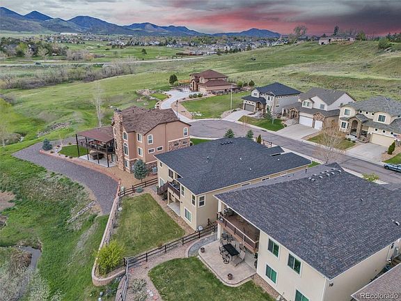 Step inside to discover hand-scraped hickory hardwood floors that set the tone for refined comfort. The heart of the home is the incredible chef’s kitchen—thoughtfully designed with high-end appliances, custom cabinetry, and ample space to entertain. The open-concept layout flows effortlessly into the living and dining areas, all perfectly oriented to take in the stunning Front Range vistas.
