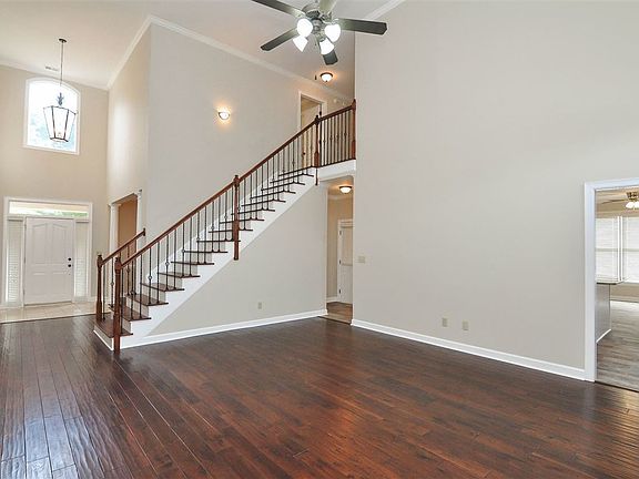 - Ceiling Fan(s), Breakfast Bar, Kitchen Island, Pantry, Double Vanity, Walk-In Closet(s), Eat-in Kitchen, Attic Fan, Master Up, Vaulted/Coffered Master, Two Story Foyer, Smooth Ceiling, Master Down, Separate Tub & Shower, Full Bath Down, Luxury Master Bath, Whirlpool(s), 2 Full Master Baths
