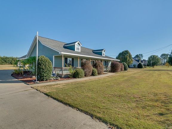 Great house on 1.43 acres, 1,512 Square feet. Open floor plan, living, dining and kitchen is open, living room has a gas log fireplace, kitchen has lots of cabinets, a breakfast bar, and all appliances remain. Recently updated with tile flooring throughout, fresh paint on outside and inside, ready to move into. Covered front porch, carport, 2 storage buildings, dog pen with chain link fence, nice level yard.