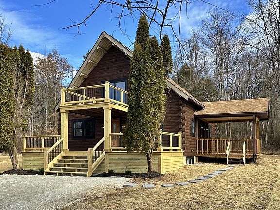 Have you ever thought of owning your very own cabin in the woods? Look no more, this is it! This beautifully updated home gives you the feeling of living in the country, sitting on 5.04 acres, yet close to everything. Featuring: 3 beds, 3 full baths, full finished basement with a bedroom, bonus room (living room / play room) You can sit out on your newly built large porch, side porch or your upper balcony and take in the country setting. There is a brand new 2 car detached garage with electric. The home also has a new HVAC. You do not want to miss this one. Schedule your showing today!