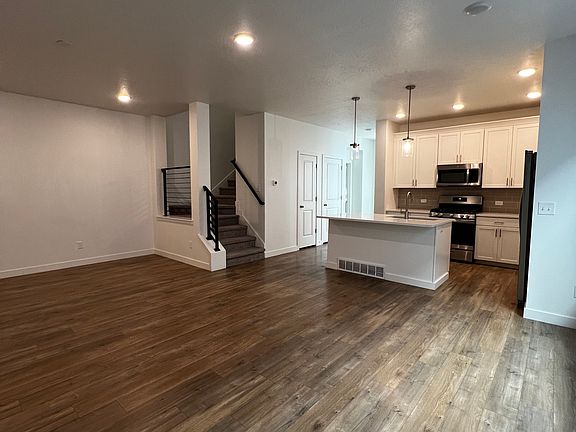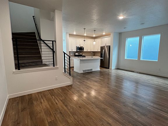 2800 sq foot with 2000 sq ft finished, extended 475 sq ft attached, 2 car garage. This home is in the new Ridgeview community which has parks, playgrounds, and pickleball courts. It also has direct access to the Murdock trail, great for biking running, and walkers. Walking distance to shops, restaurants, and Lone Peak high school. Located less than a mile from Highland Glen park which has a lake, fishing, and trails. Minutes away from the American fork canyon entrance. Spacious open living room and kitchen area , perfect for entertaining. The kitchen has beautiful quarts countertops, microwave, dishwasher, garbage disposal, and a side by side refrigerator with water and ice dispenser. The main floor has a separate office with french glass doors and 1/2 bath. The spacious laundry room has cabinets and a granite folding counter, and is located on the second level next to the bedrooms and loft. The master bedroom has a large walk in closet and a full bathroom that includes two sinks, a walk in shower, a sunken tub with a beautiful view of the mountains.
