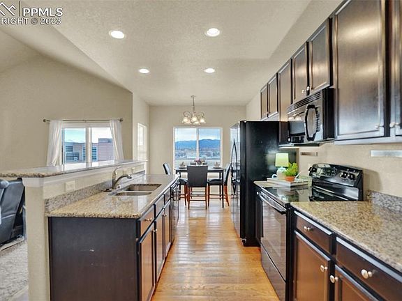 Opportunity Awaits! As you enter the home you'll be greeted by an open concept floor plan with gigantic living room, sky high vaulted ceilings and walk out to backyard and concrete deck. The kitchen has granite countertops, newer appliances, a deep pantry and an eat-in dining space that is just filled with light from the huge windows--Yes, Mountain views! Main level master bedroom has mountain views and an adjoining bath complete with double sink vanity, soaking tub and walk in tile shower. Entertainment will be no problem in the 2nd family room. The two basement bedrooms have walk in closets and a full bath. Storage galore in your home with basement storage, ample hallway closets and 10x10 storage shed in the backyard. The property is fenced with 2 access gates and garden beds. All of this in sought after Cumberland Green where you can enjoy parks, playgrounds, frisbee golf, walk to schools, close to bases and more!